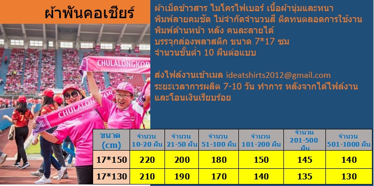 โรงงานผลิตและออกแบบผ้าพันคอฟุตบอล, ผ้าพันคอทีมชาติไทย, ผ้าพันคอกีฬา, ผ้าเชียร์, ผ้าเชียร์ไทยใช้ใจล้วนๆ สั่งทำผ้าพันคอ ราคาถูก คุณภาพดี ผลิต 3 - 10 วัน  รับผลิตพันคอเชียร์ฟุตบอล ผ้าพันคอสโมสร ผ้าเชียร์กีฬา ผ้าพันคอที่ระลึกผ้าพันคอ เนื้อผ้าไมโครไฟเบอร์อย่างหนา พิมพ์ด้วยระบบ Digital Sublimation
